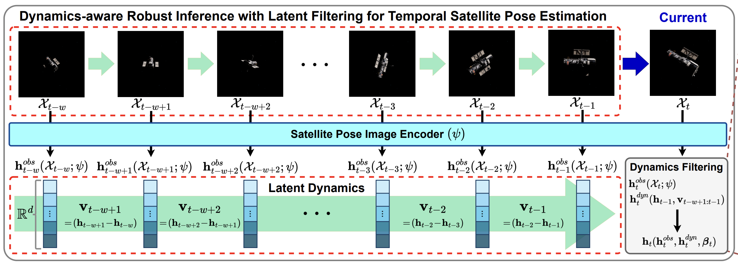 DRIFT: Dynamics-aware Robust Inference with Latent Filtering for Temporal Satellite Pose Estimation